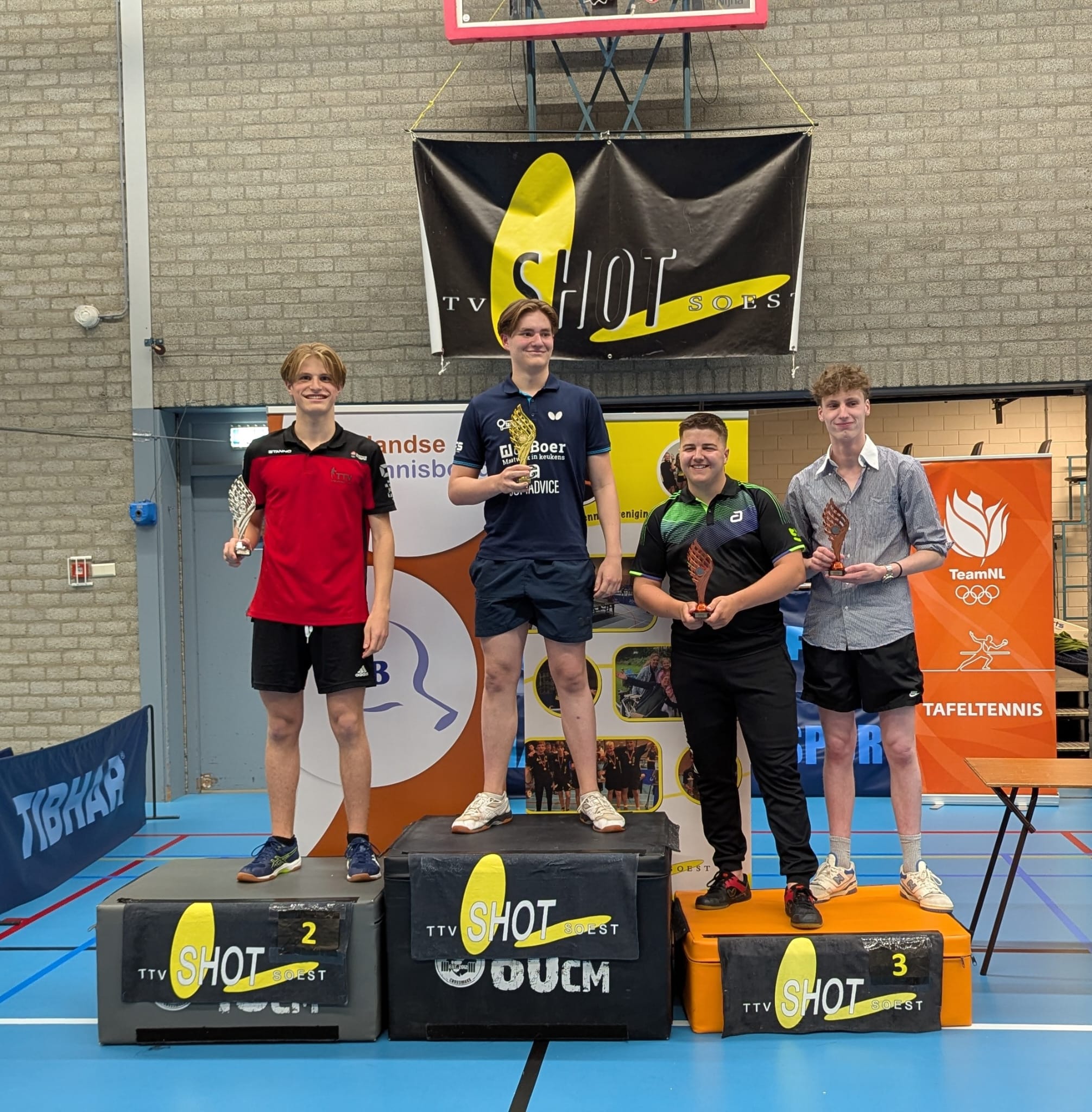 Noa trof nu de echt grote jongens van de Nederlandse (jeugd) competitie, spelers die 2de en zelfs 1ste divisie spelen. Ja, hij kwam tekort maar ook hier geld dat het echt niet veel scheelde. Naar eigen zeggen heeft hij vooral genoten vandaag. De toch al altijd aanwezige big smile was niet van zijn gezicht te krijgen. Alleen de wedstrijd tegen para speler Bartelink Groeneveld was niet al te best maar tegen zowel Waersegers als Wijnhout heeft hij laten zien dat hij eraan komt.