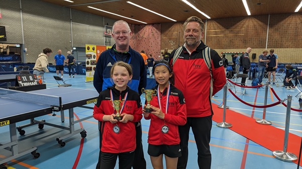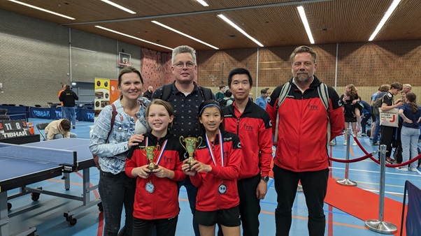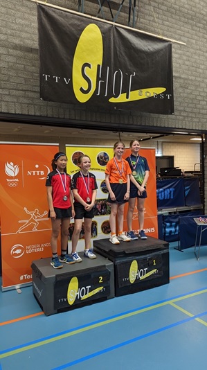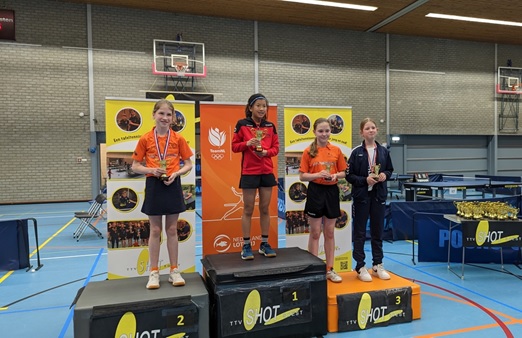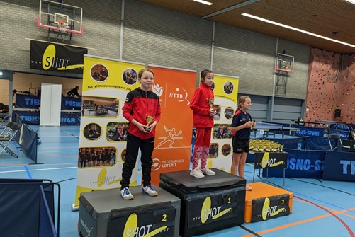 In het weekend van 13/14 mei vonden in Baarn de Nederlandse Jeugd Kampioenschappen (NJK) plaats. Op 13 mei speelden de spelers met een B-licentie en op 14 mei speelden de spelers met een A-licentie. Spelers die op zaterdag goed gepresteerd hebben mochten ook op zondag nog meedoen. Vanuit TTV Veldhoven waren er helaas geen jeugdleden met een B-licentie, maar we mochten met Charlotte Kang en Maja Geboers meedoen bij de NJK-A. Precies een jaar geleden mocht Charlotte bij NJK-B meedoen en mocht ze op zondag terugkomen om zich met de beste spelers van Nederland te meten. Ze had daarom al wat ervaring. Voor Maja was het de eerste keer. Charlotte deed mee in de groep Onder-13 en Maja bij de Onder-11 groep.