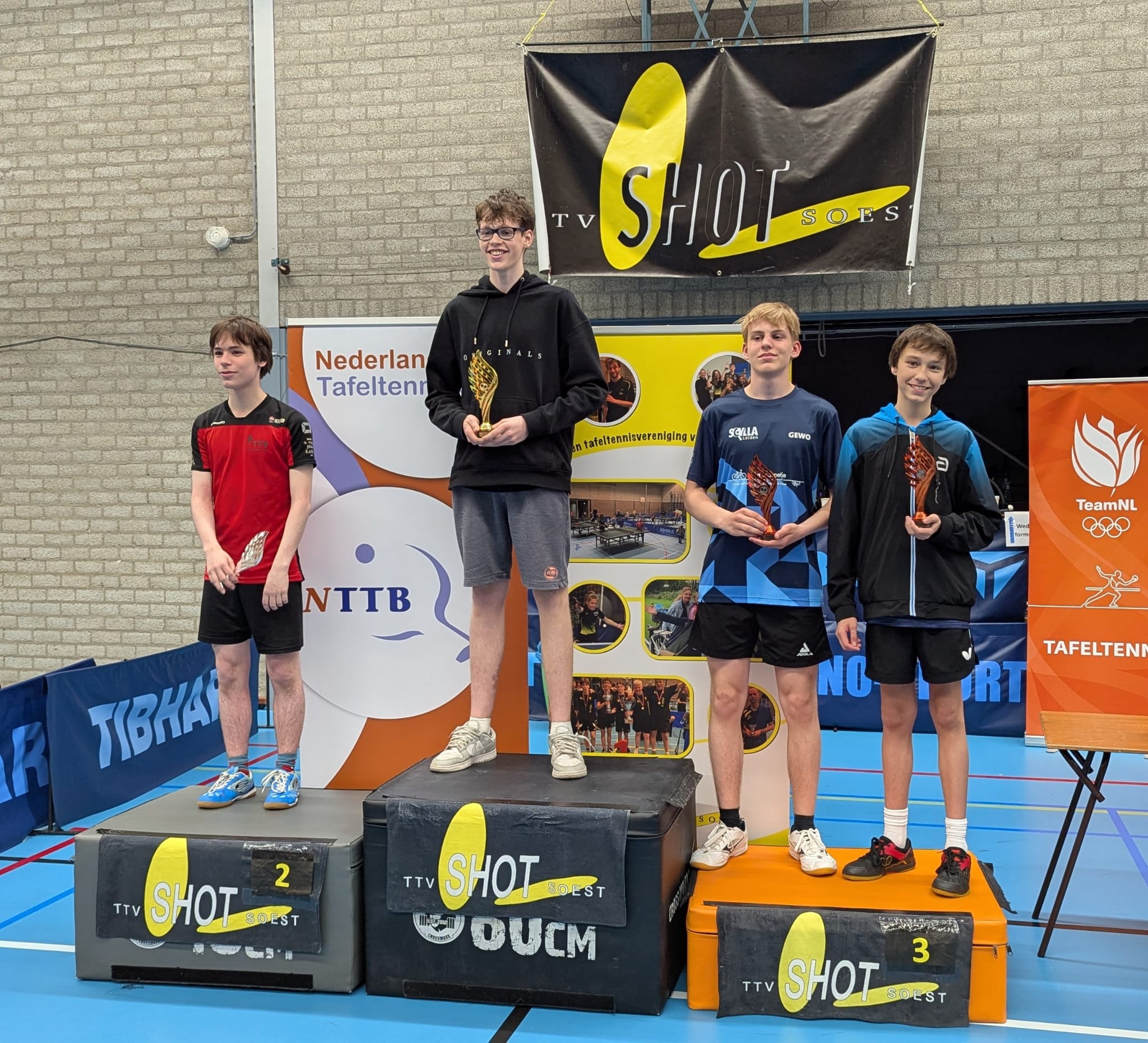 Noa trof nu de echt grote jongens van de Nederlandse (jeugd) competitie, spelers die 2de en zelfs 1ste divisie spelen. Ja, hij kwam tekort maar ook hier geld dat het echt niet veel scheelde. Naar eigen zeggen heeft hij vooral genoten vandaag. De toch al altijd aanwezige big smile was niet van zijn gezicht te krijgen. Alleen de wedstrijd tegen para speler Bartelink Groeneveld was niet al te best maar tegen zowel Waersegers als Wijnhout heeft hij laten zien dat hij eraan komt.